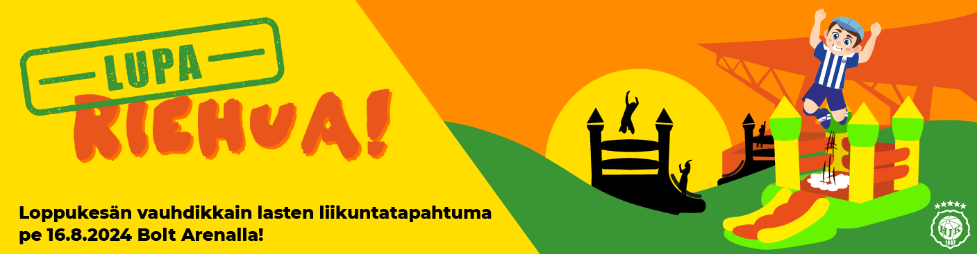 Pompi, kiipeä, juokse, liu’u, pujottele, heitä ja nappaa saippuakuplia. Tätä kaikkea on uusi Lupa riehua -tapahtuma! Tule kokemaan liikunnan iloa ja kisailua loppukesän vauhdikkaimpaan lasten liikuntatapahtumaan.